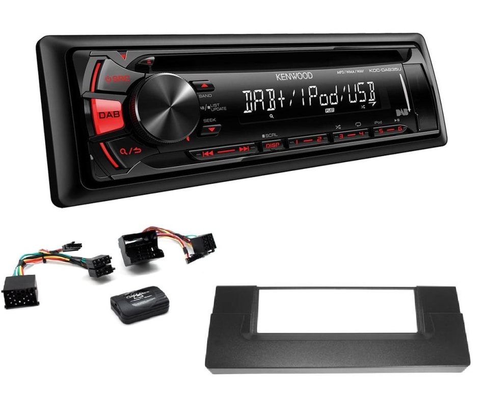Pakkeløsning som passer til 5 serie E39 pg X5 E53. Leveres som sett bestående av: -DAB+ Radio/DVD spiller (KENWOOD KDCDAB400U) -Ramme til spiller. -ISO Rattfjernkontroll interface Flat og Rundstikk. -Kabelforbindelse mellom Kenwood spiller og adapter. Merk: -Om bilen har forsterker i bil originalt, kan det være nødvendig med Aktiv Systemadapter rund eller flatstikk. -Adapter som følger med i pakken passer til både gammel rundstikk og nyere flatstikk kontakt.